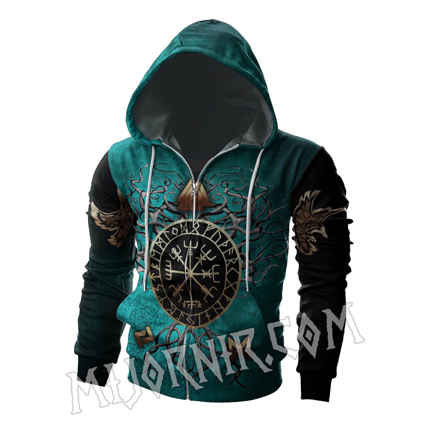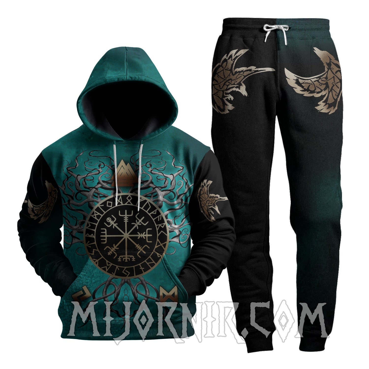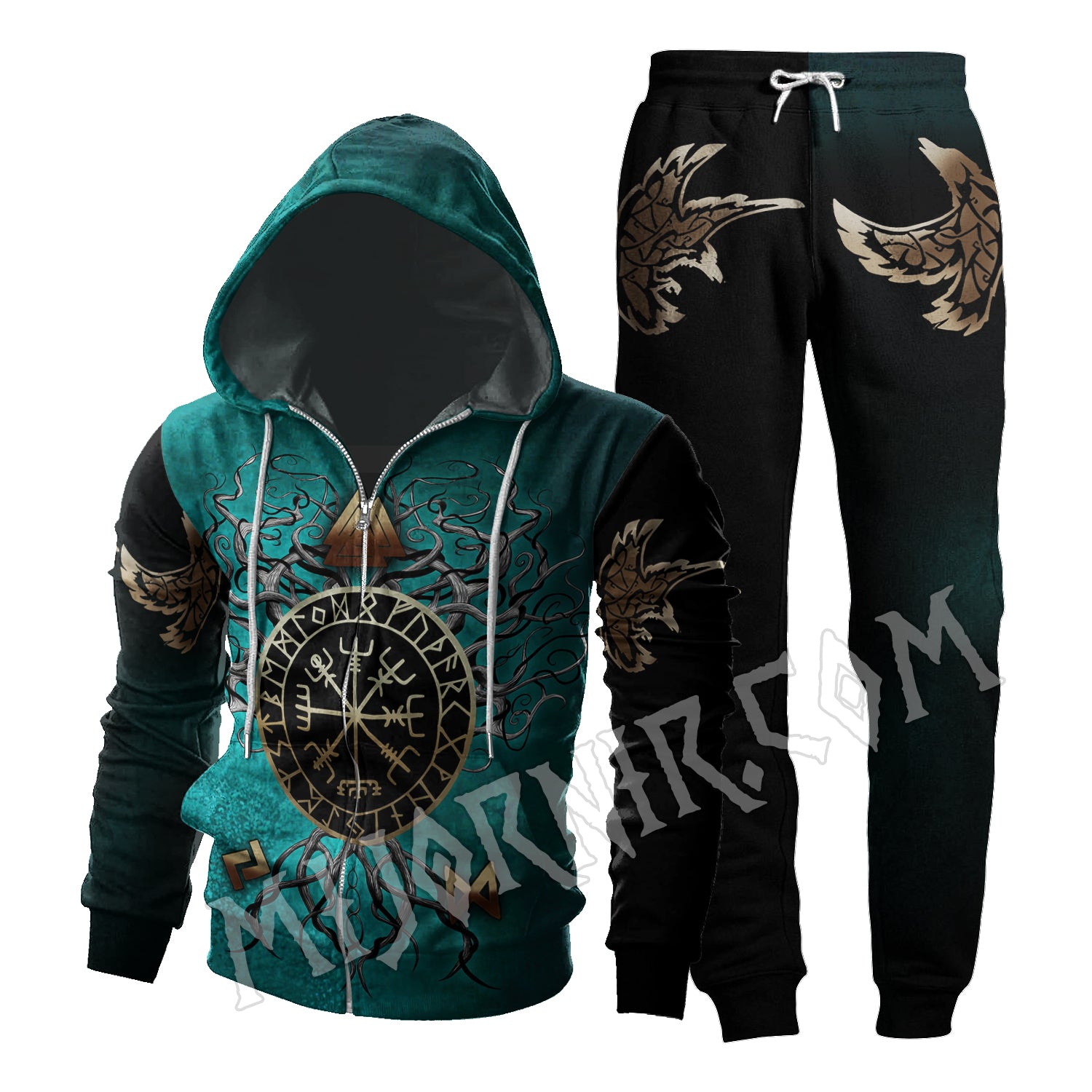 With a design inspired by Norse mythology, Vegvisir & Valknut - Viking Hoodie Set embodies the Viking spirit. Own it to confidently showcase your Viking style.