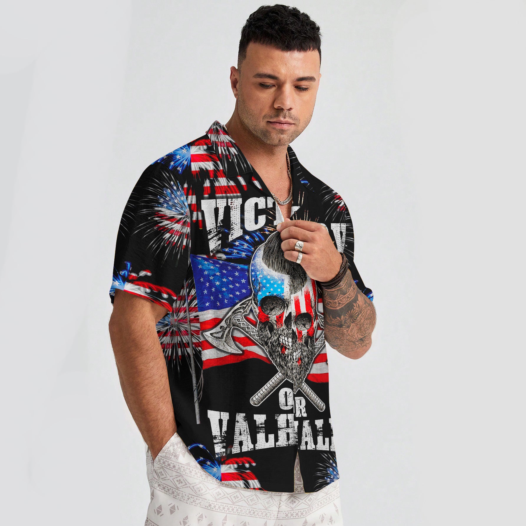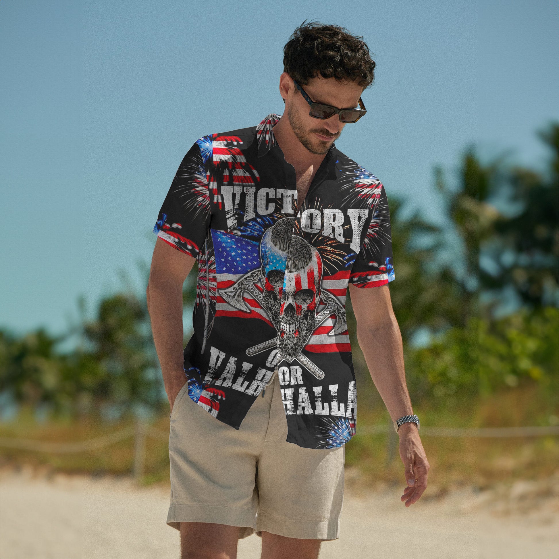 With a design inspired by Norse mythology, Victory or Valhalla – Hawaii Shirt embodies the Viking spirit. Own it to confidently showcase your Viking style.