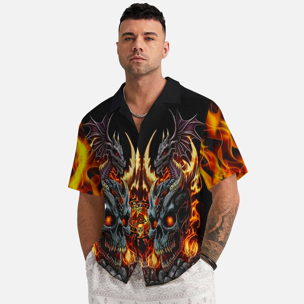 With a design inspired by Norse mythology, Viking Dragon Flames – Hawaiian Shirt embodies the Viking spirit. Own it to confidently showcase your Viking style.
