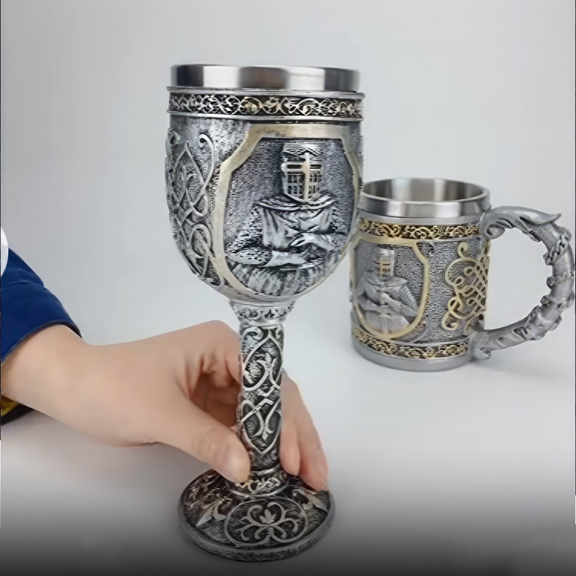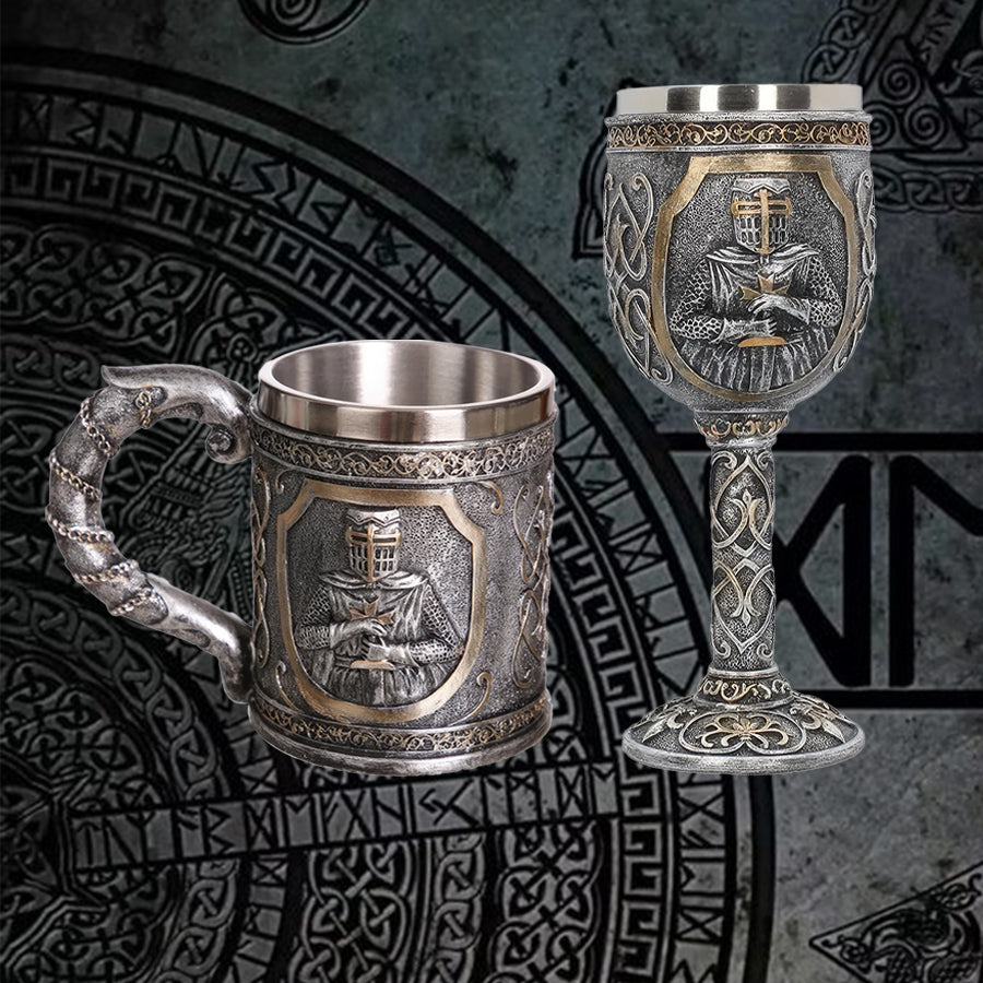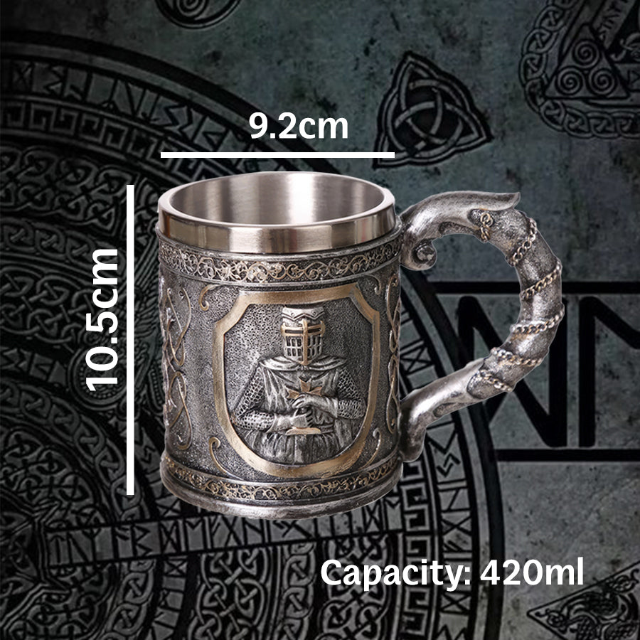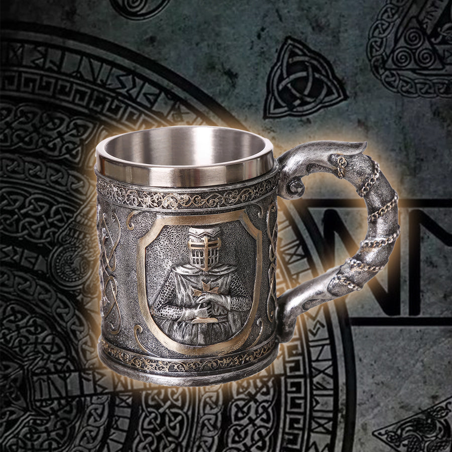 Unleash your inner warrior with the Viking Knight Drinkware Set. This meticulously crafted set features stunning 3D knight designs on each piece, making it a standout collection for any enthusiast. The stainless steel liners ensure your beverages stay at the perfect temperature, whether you're enjoying a cold beer or a hot coffee. The comfortable handles and robust construction make them perfect for everyday use or as a special holiday gift.