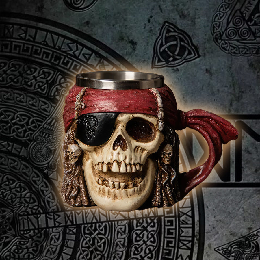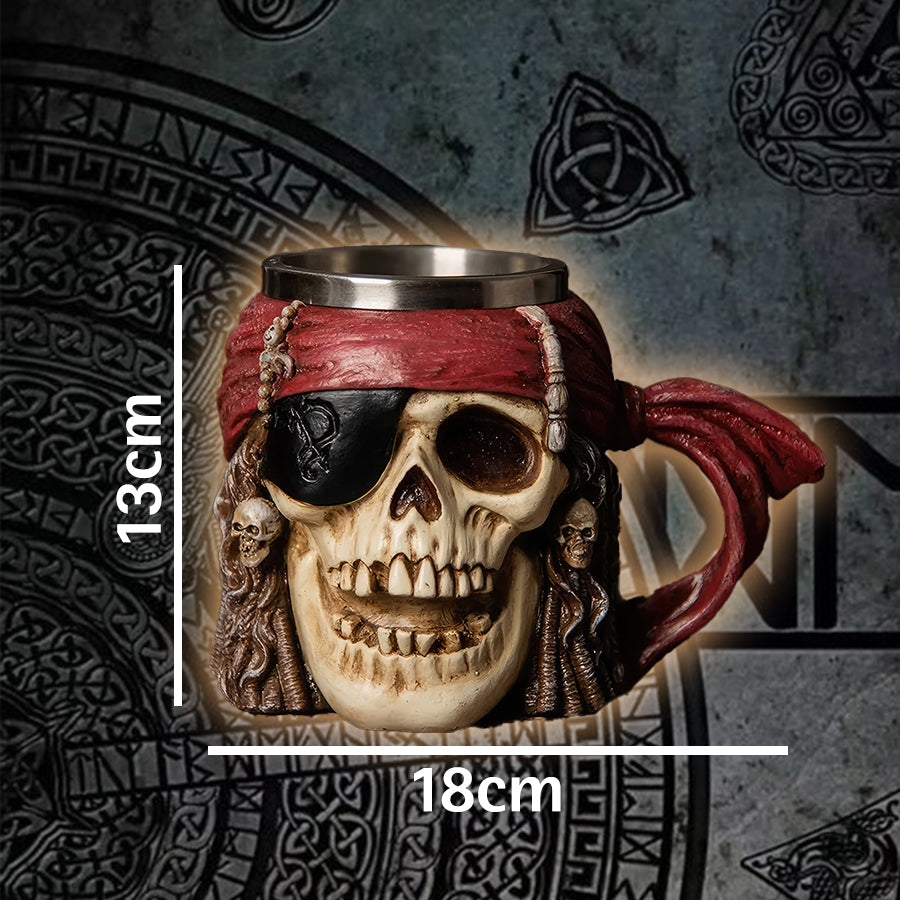 Dive into the world of adventure with our Viking Pirate Skull Beer Mug. This large capacity mug is perfect for those who appreciate unique and daring designs. Featuring an intricate 3D pirate skull crafted from high-quality resin, this mug is not only a functional piece of drinkware but also a work of art. The stainless steel interior ensures your beverages stay at the perfect temperature, whether it's a refreshing beer or a hot coffee.