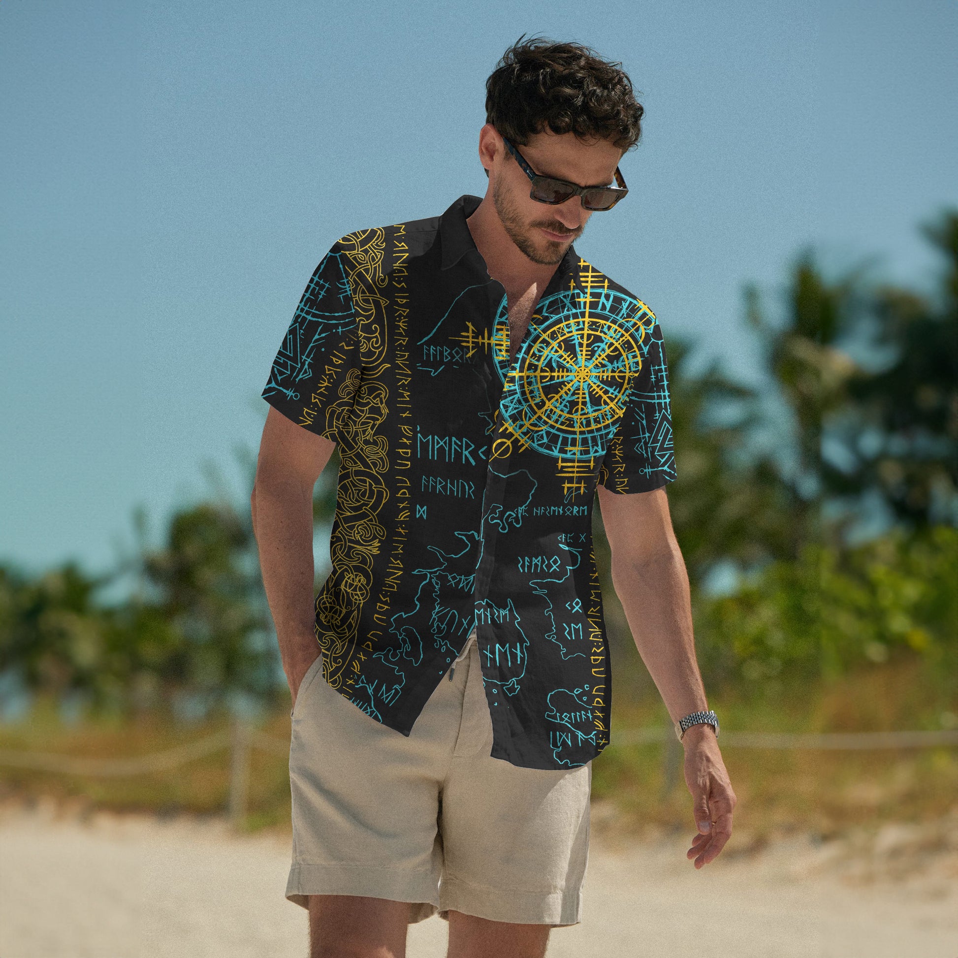 With a design inspired by Norse mythology, Viking Runes & Vegvisir – Hawaii Shirt embodies the Viking spirit. Own it to confidently showcase your Viking style.