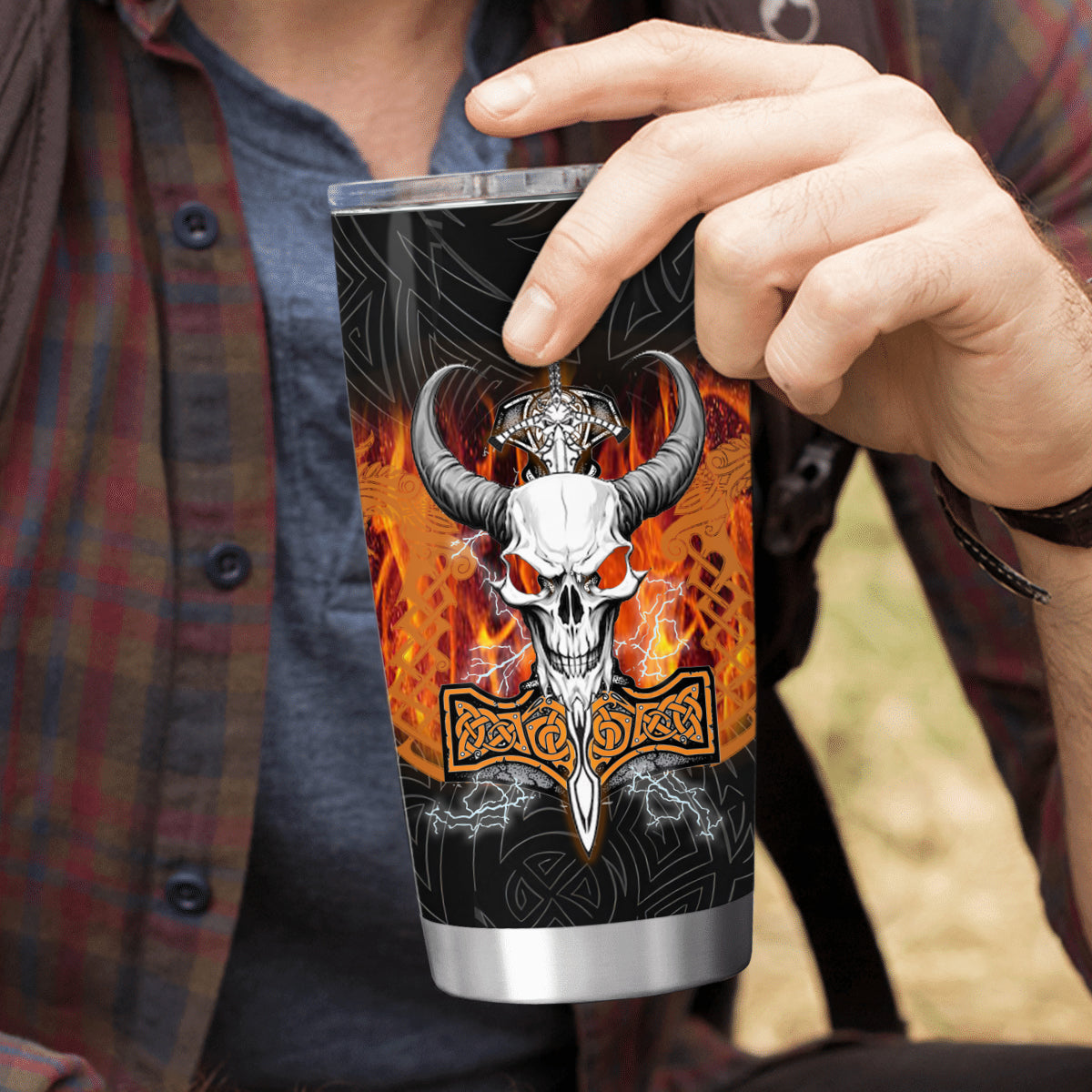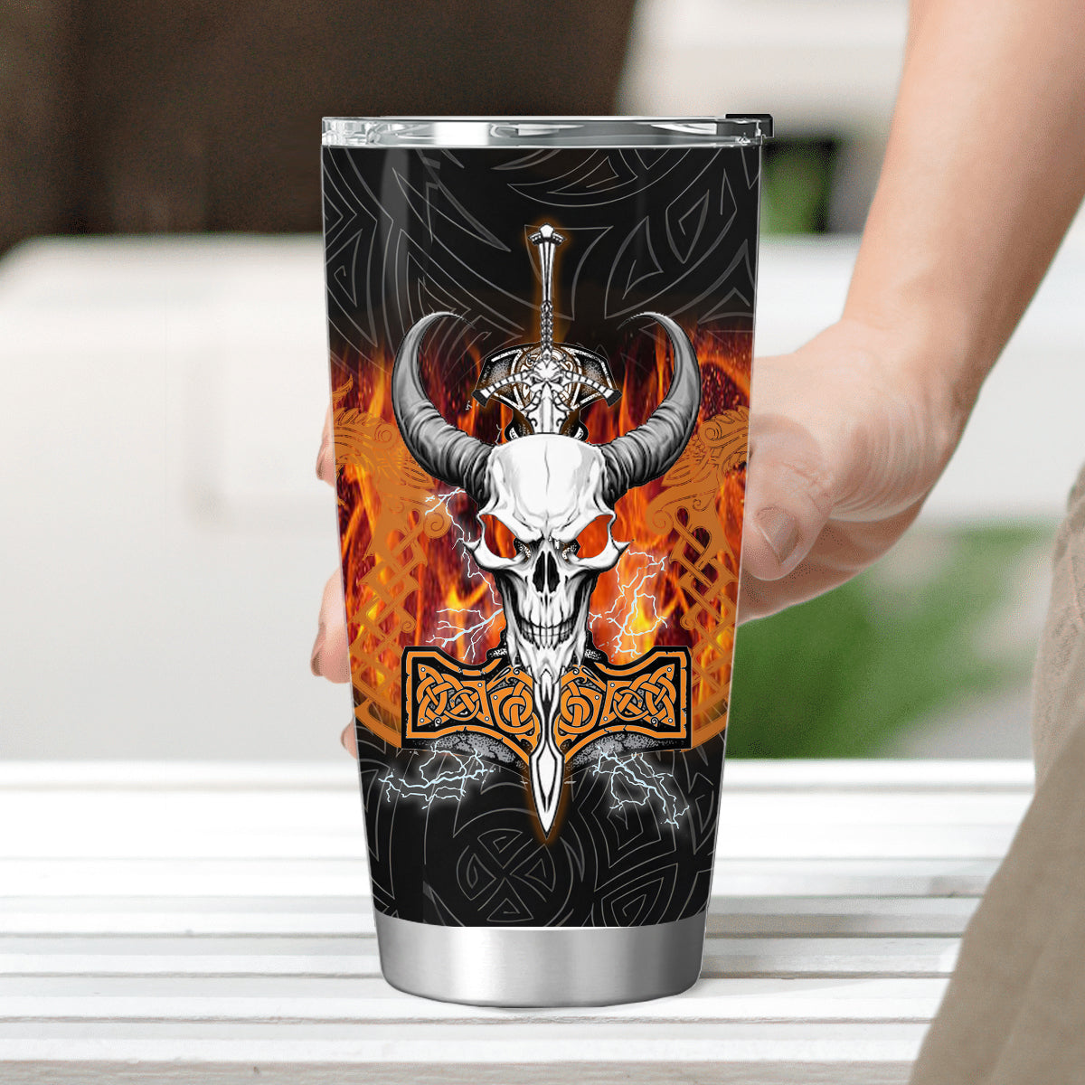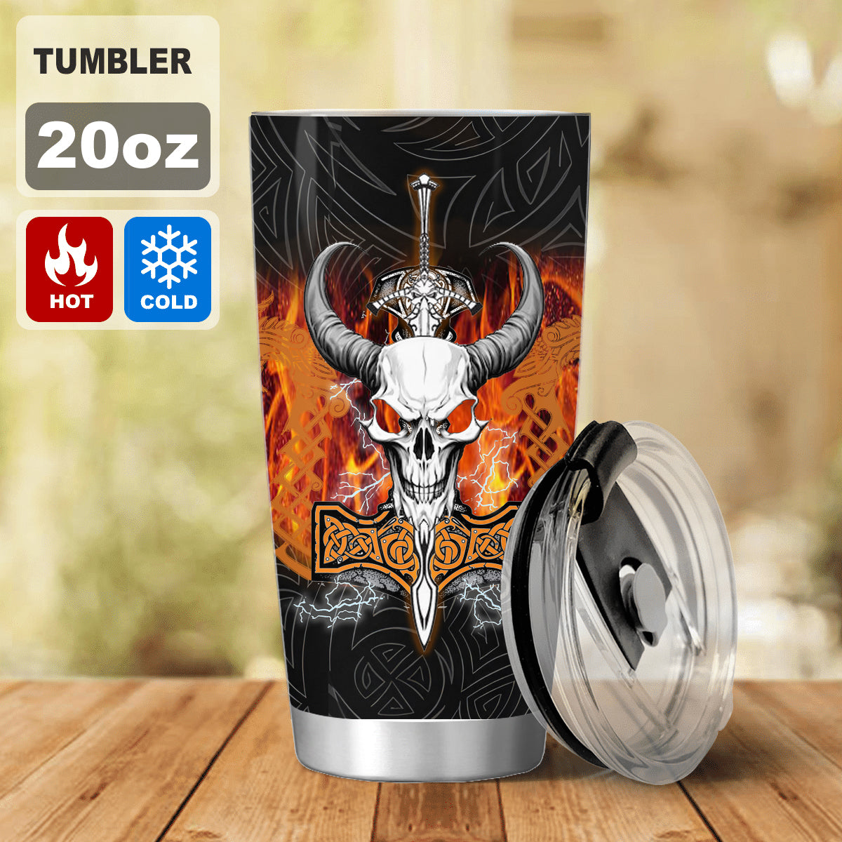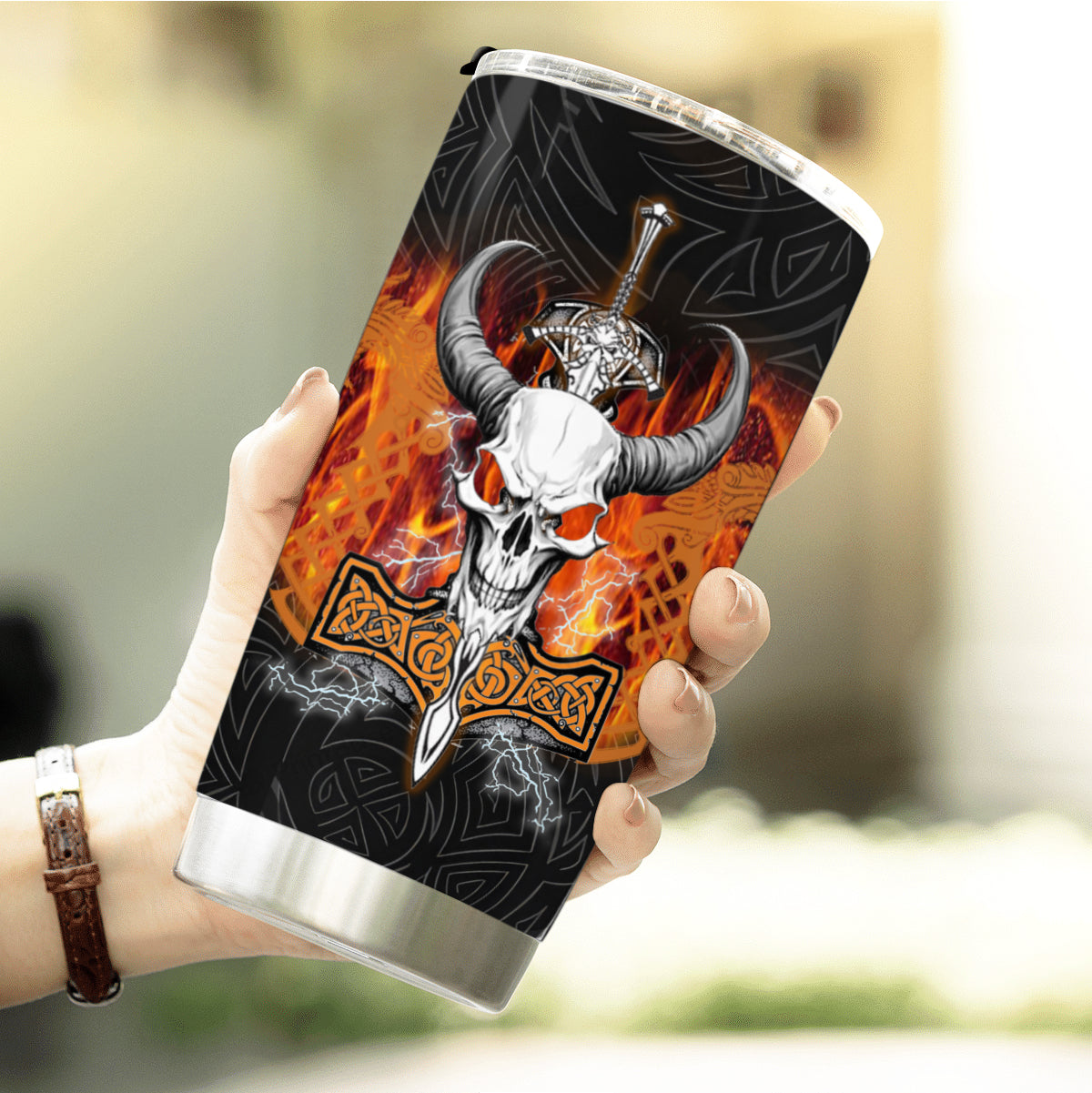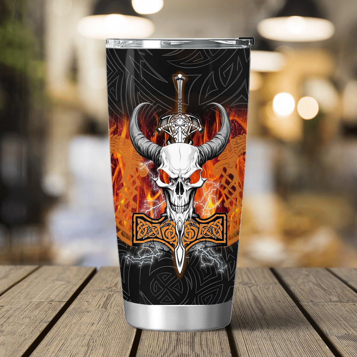 Viking Soul - Viking Tumbler is the perfect blend of classic Viking style and modern functionality. Featuring a unique design with a powerful Viking skull, accompanied by a sword and intricate decorative patterns, this tumbler is made from premium stainless steel, ensuring durability and excellent temperature retention to keep your drinks hot or cold for hours.