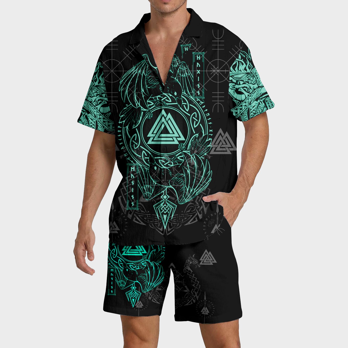 Viking Valknut & Raven Hawaiian Set – Norse Symbol of Power and Wisdom