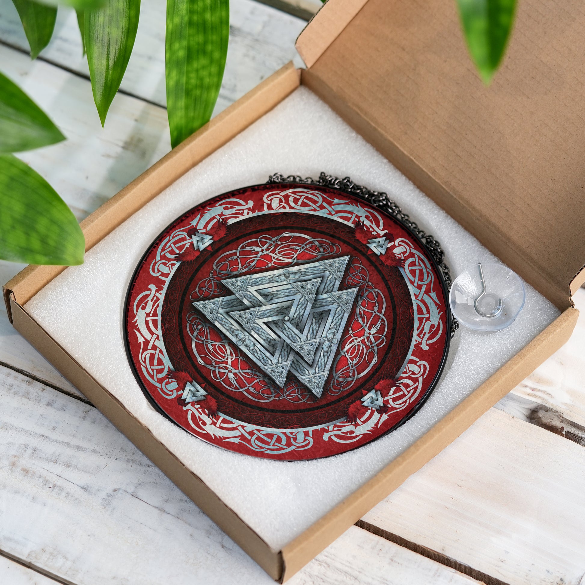 Elevate your space with the Viking Stained Glass Ornament, a stunning tribute to Norse mythology and craftsmanship. Featuring iconic symbols like the Valknut, Yggdrasil, and Vegvisir, each ornament brings a touch of Nordic heritage to your home.