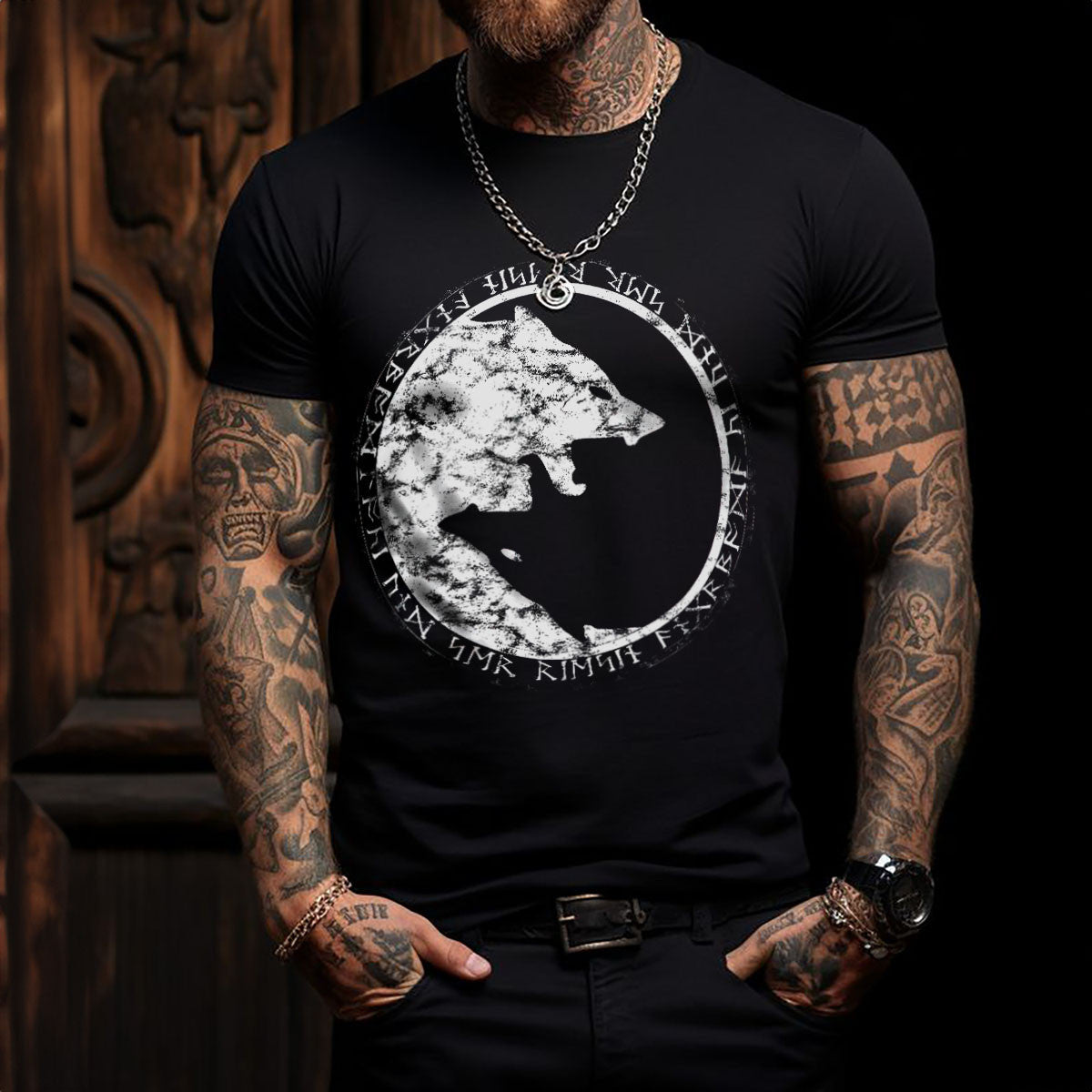 Yin Yang Wolf Black Viking T-Shirt