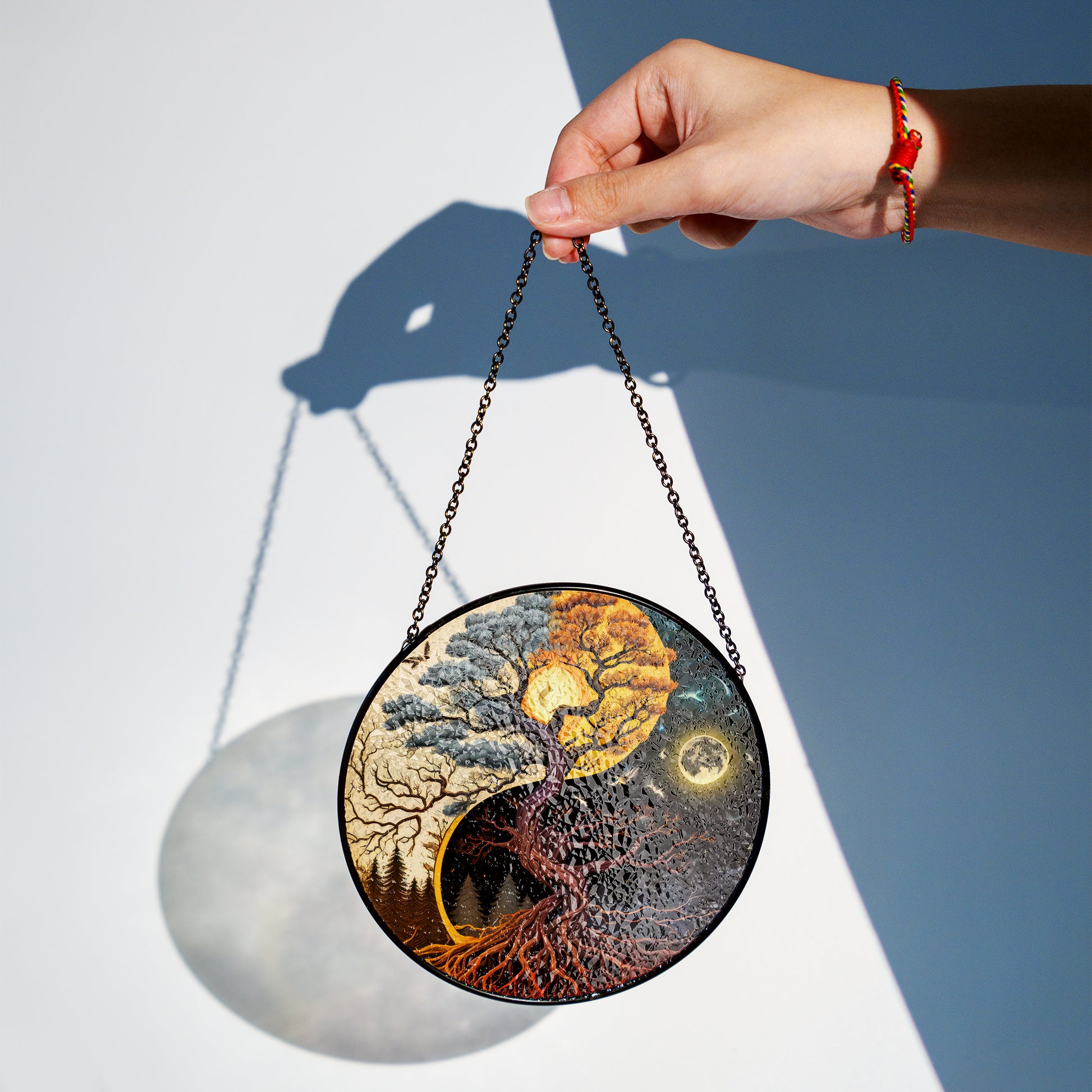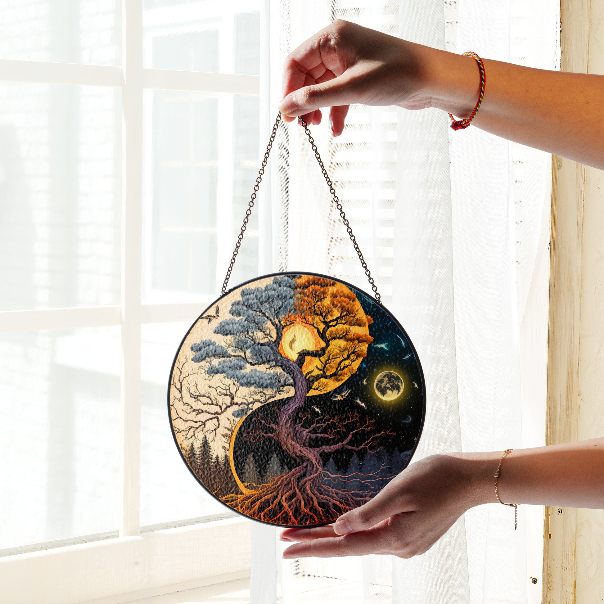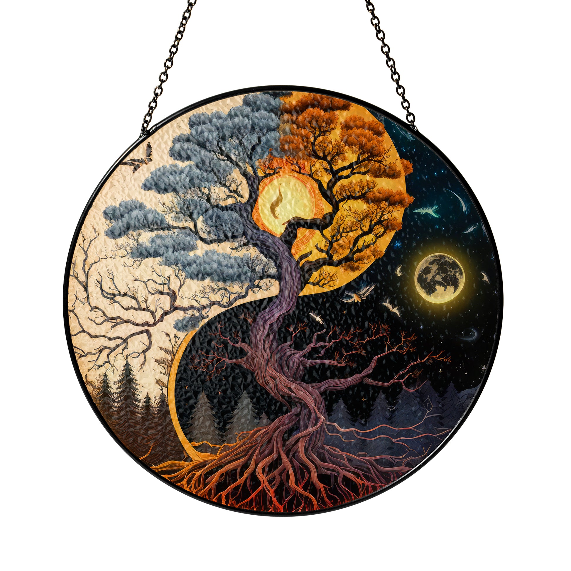 Yin-Yang Yggdrasil - Viking Stained Glass Hanging Ornament